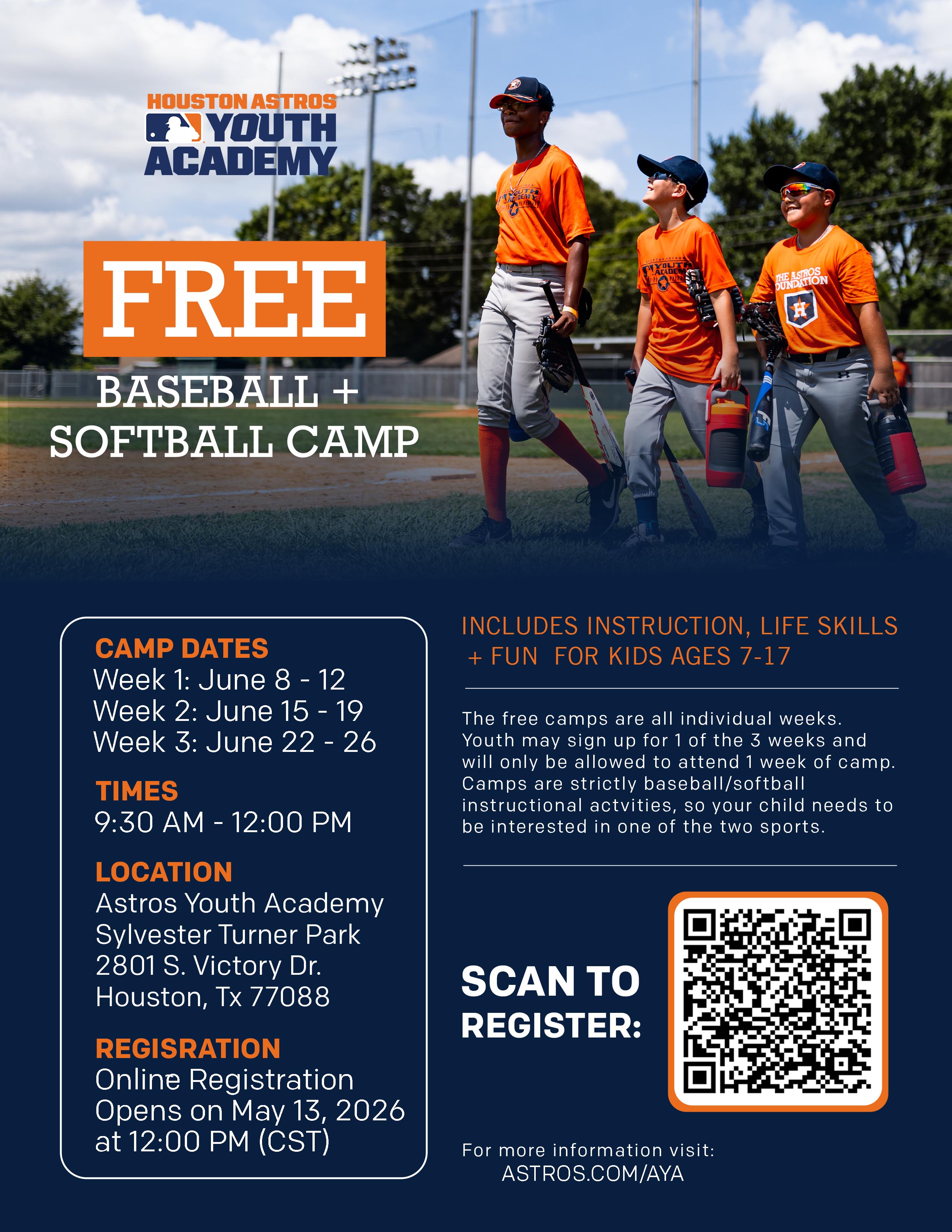2026 ASTROS YOUTH ACADEMY FREE BASEBALL/SOFTBALL SUMMER CAMPS