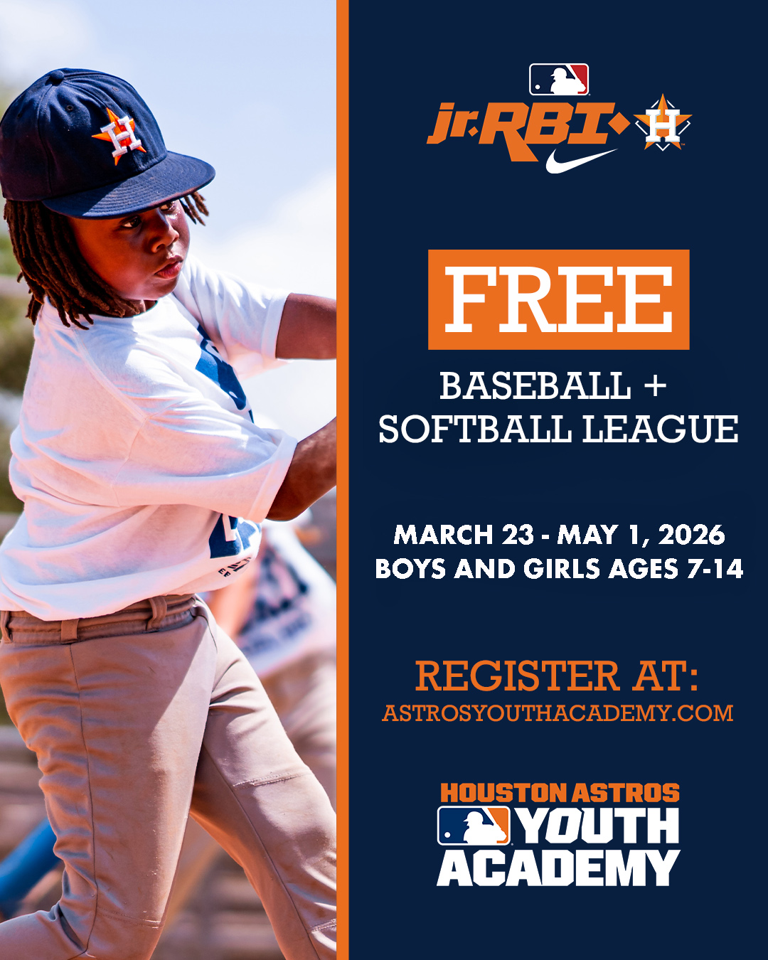 To register for the 2026 Astros Nike Jr. RBI league please use the following link: